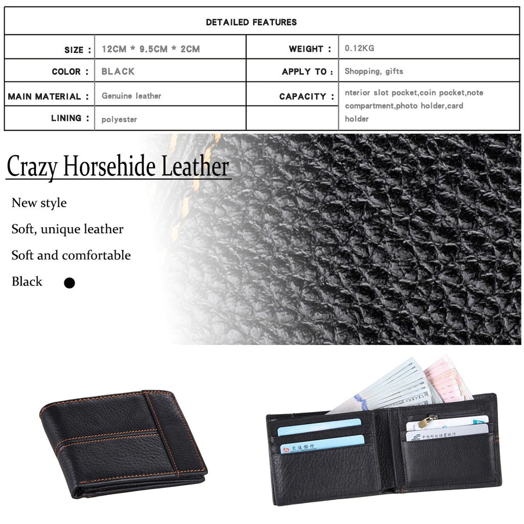 - Ultra slim handcrafted genuine cowhide leather wallet comfortably carries your business cards, credit and debit cards, driver's license etc.