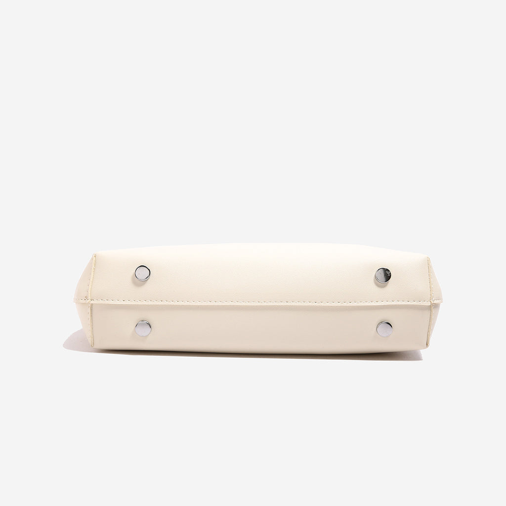 Off White PU Leather Shoulder Bag - Underarm Hobo Bag with Adjustable Strap