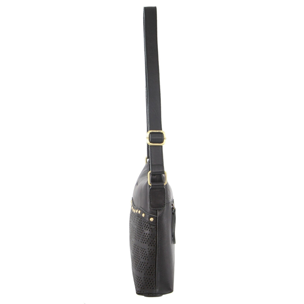 Pierre Cardin Womens Leather Perforated Cross-Body Bag with Stud Detailing - Black